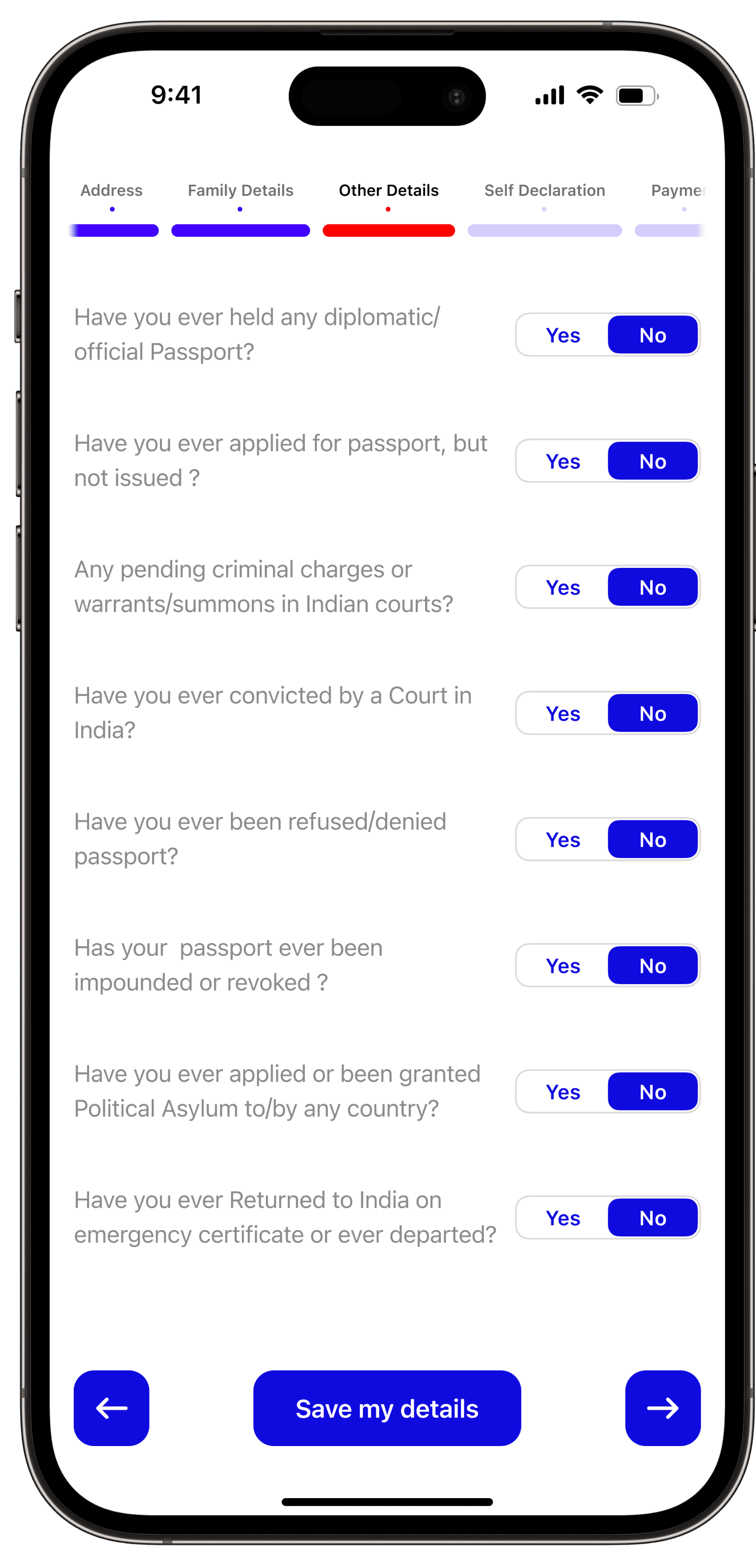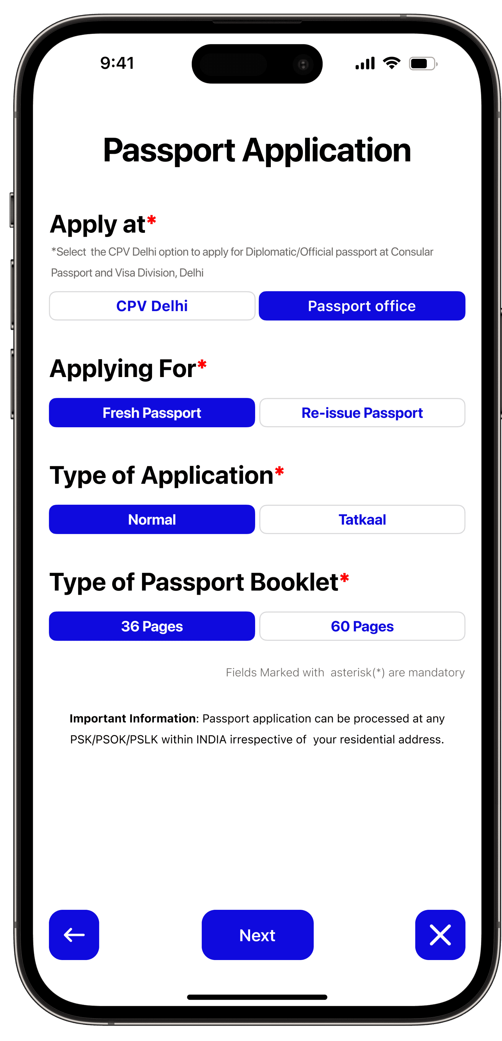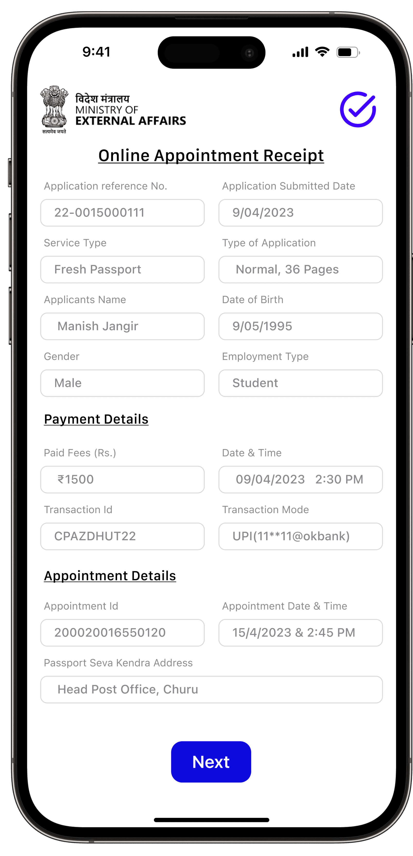 Users have the convenience of selecting from various payment methods, and the app provides a user-friendly way to display available appointment dates along with the days left for the appointment.