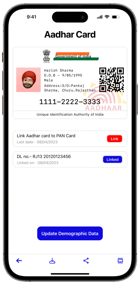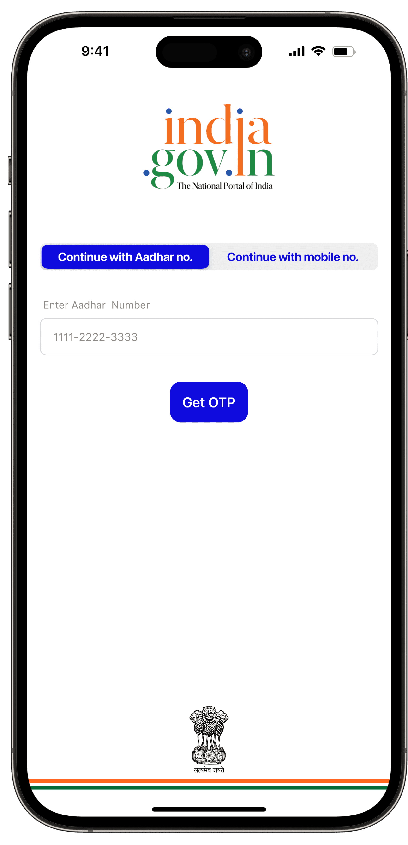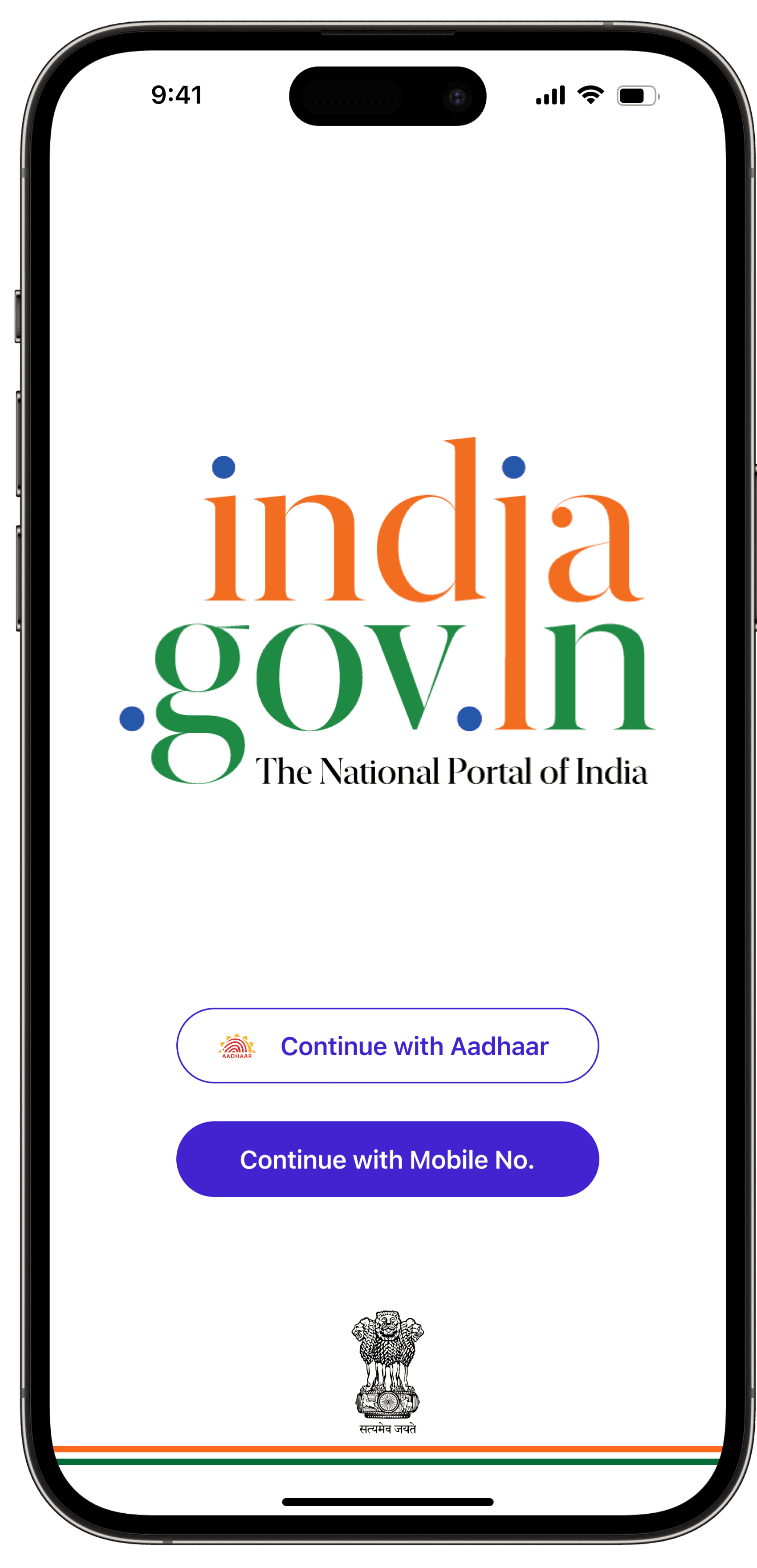 The onboarding process includes a seamless Aadhar ID/mobile (linked to Aadhar) login for identity verification. Users will find an introductory section to learn more about the app's features.