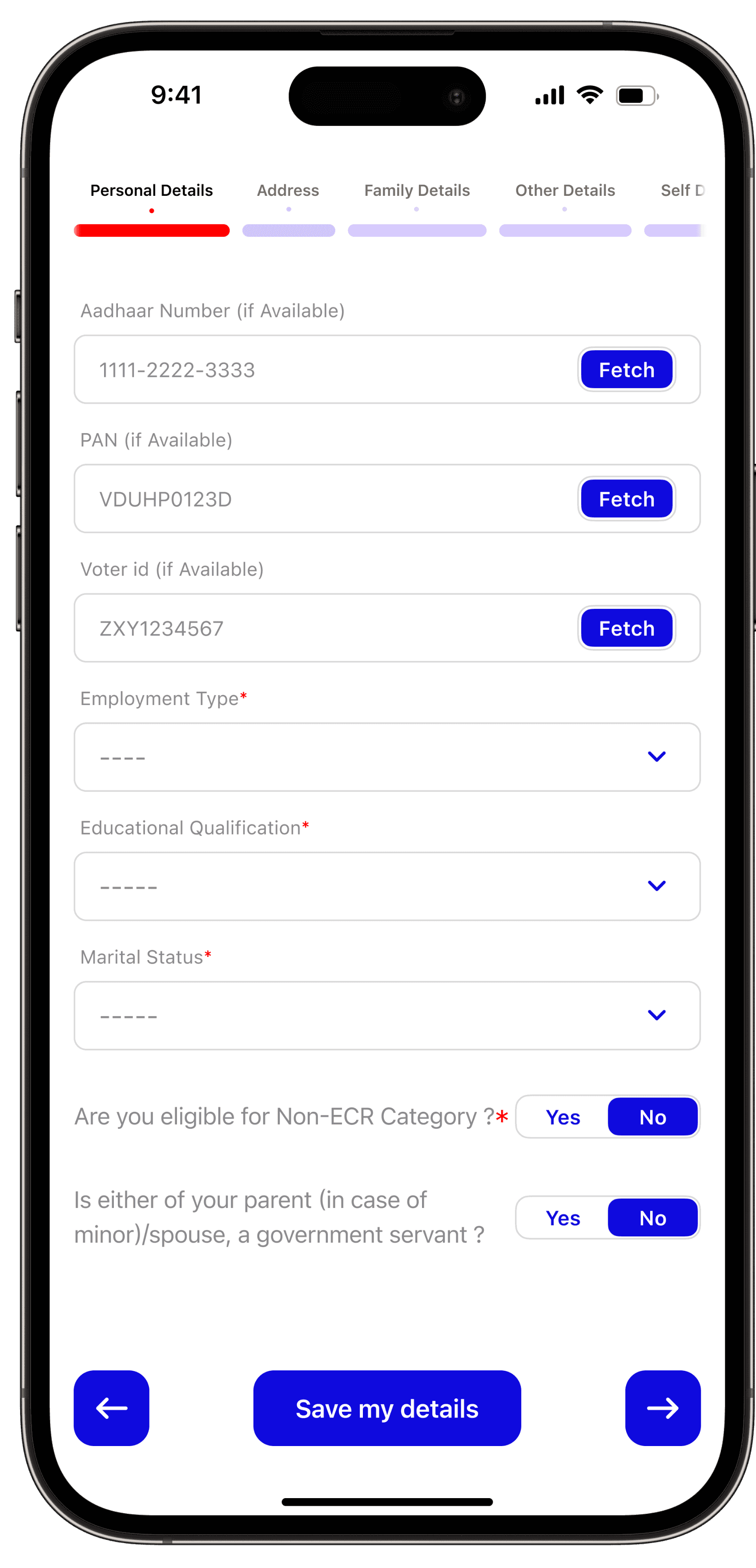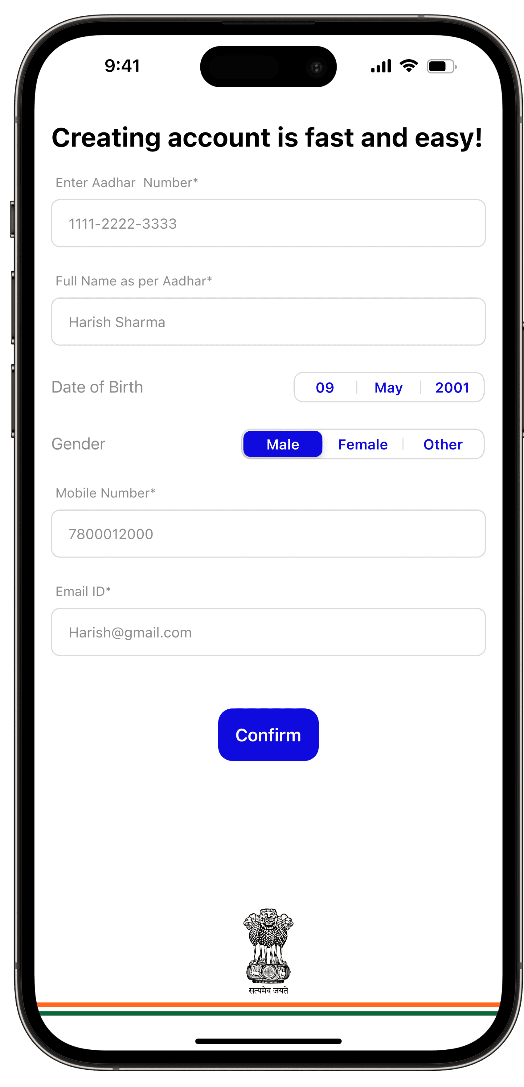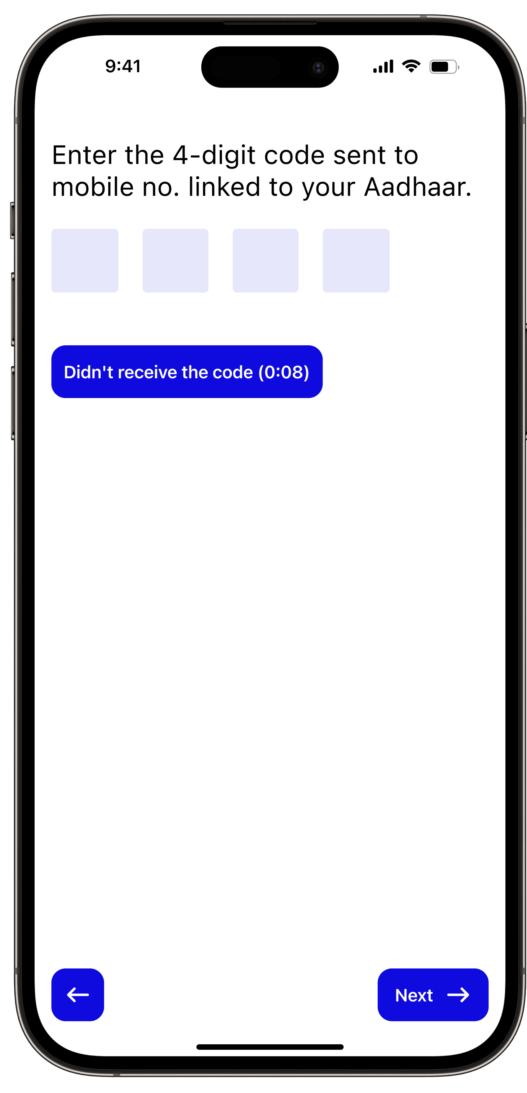 The onboarding process includes a seamless Aadhar ID/mobile (linked to Aadhar) login for identity verification. Users will find an introductory section to learn more about the app's features.
