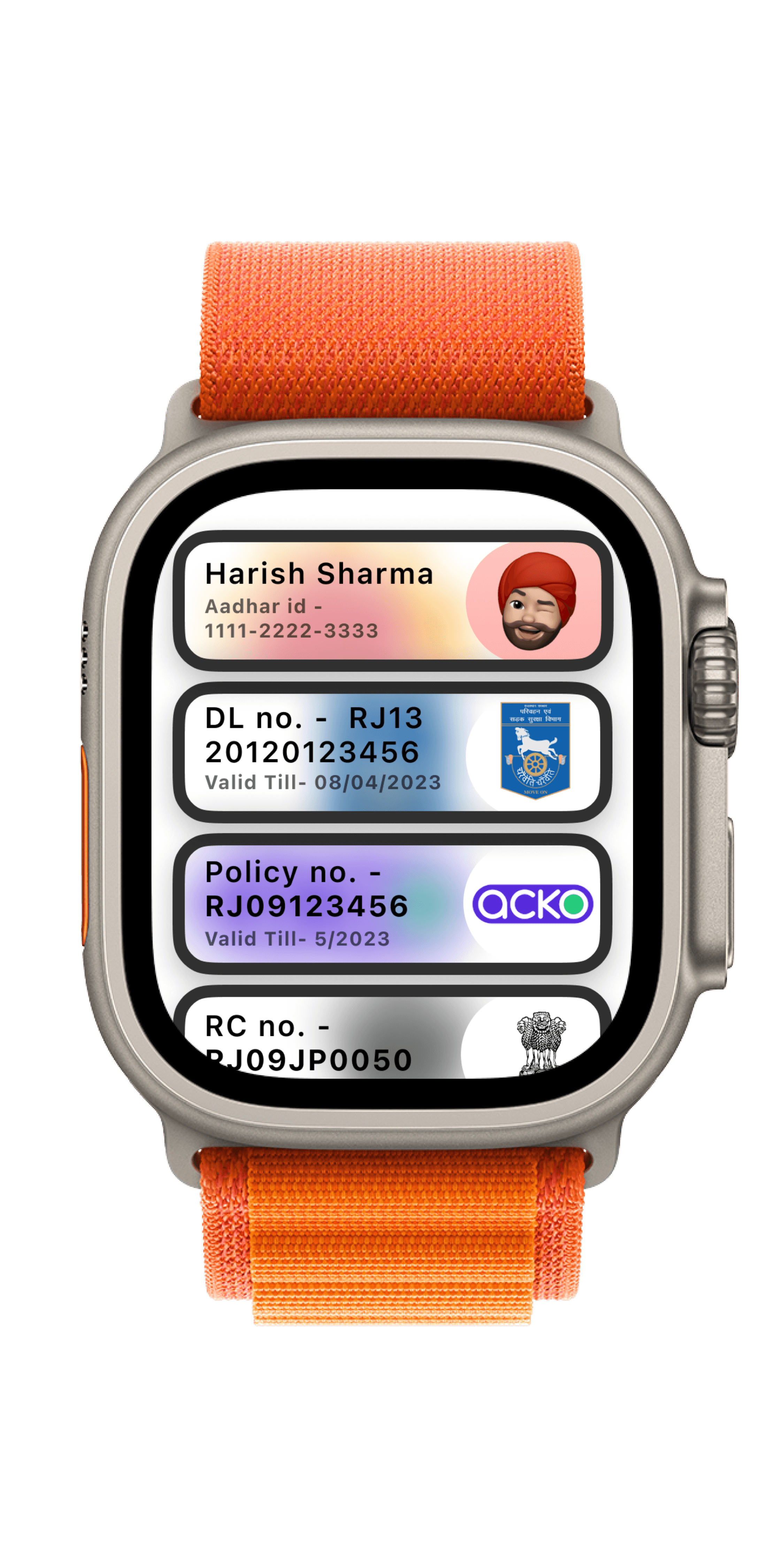 For instance, while traveling on your bike, if a police officer requests document verification, you can utilize the watch feature to access the document QR codes and unique ID. This allows you to easily share the information with the officer for quick verification by scanning the code with their device.